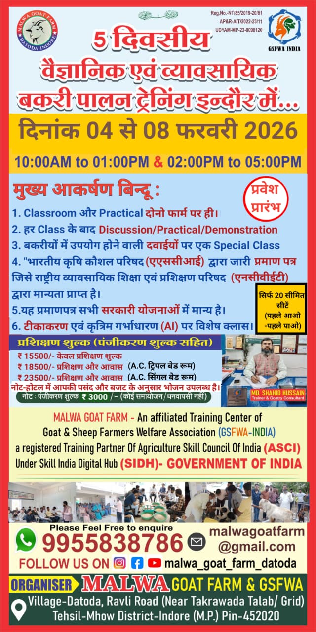 Next five days training sessions will be held from 04 to 08 February 2025 under the banner of MALWA GOAT FARM & GSFWA INDIA